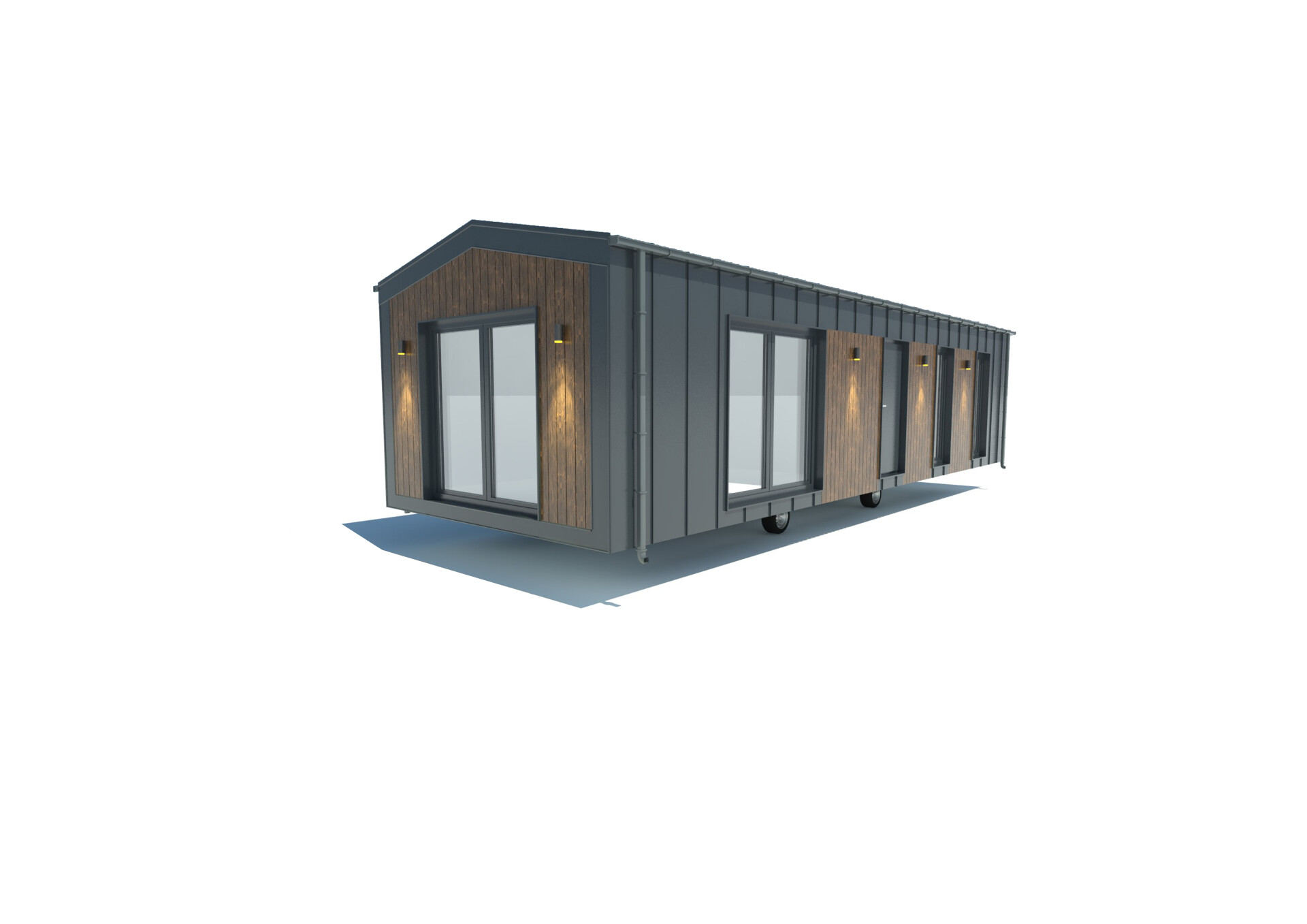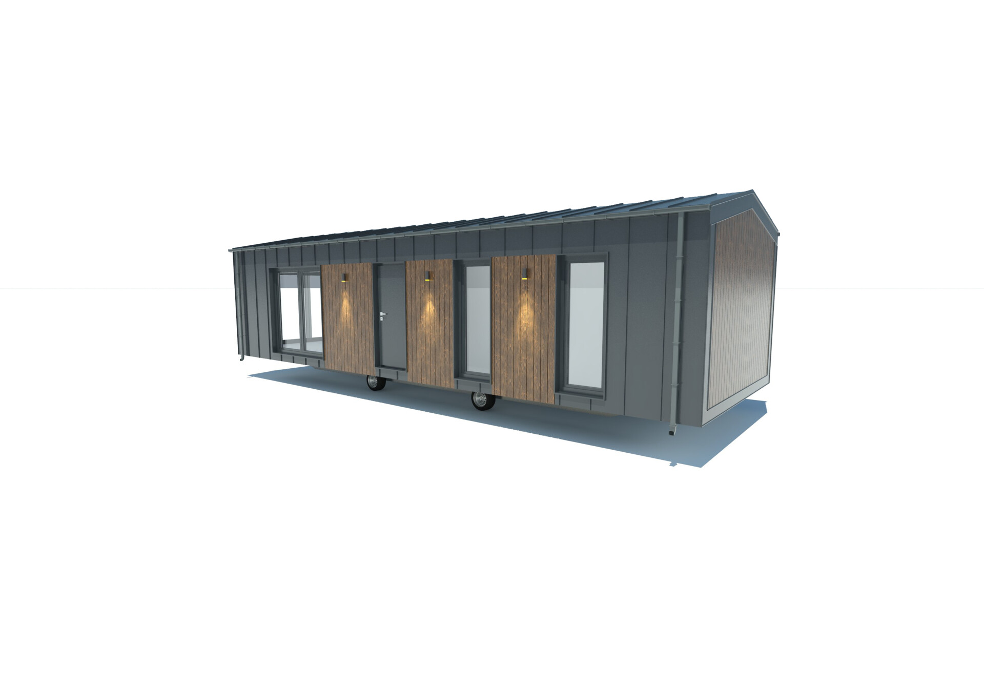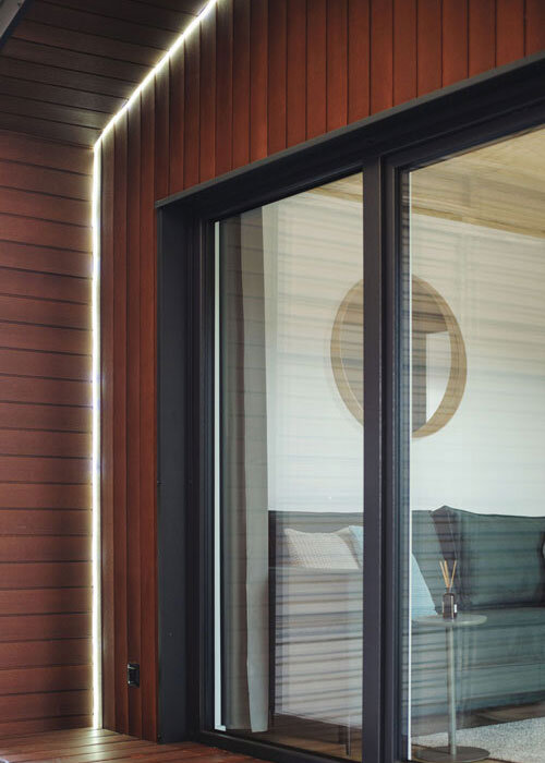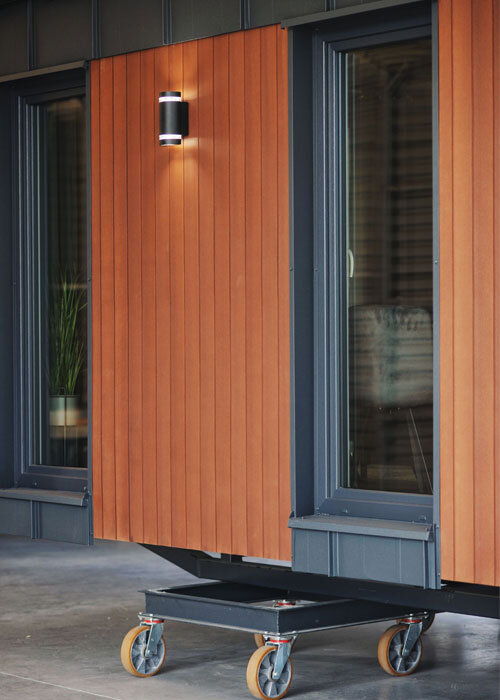 De gevel in de Premium-modellen is gemaakt van duurzaam Resysta composietplanken en staande naad metalen panelen. Het interieur is afgewerkt met uitsluitend hoogwaardige materialen, zoals vinylpanelen, MDF-panelen en natuurlijk hout.