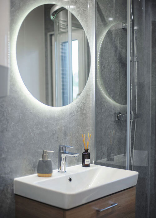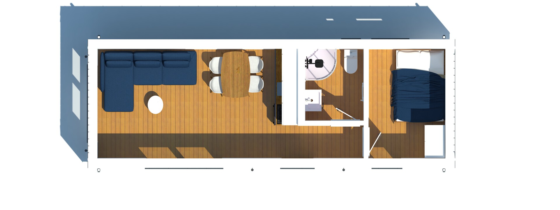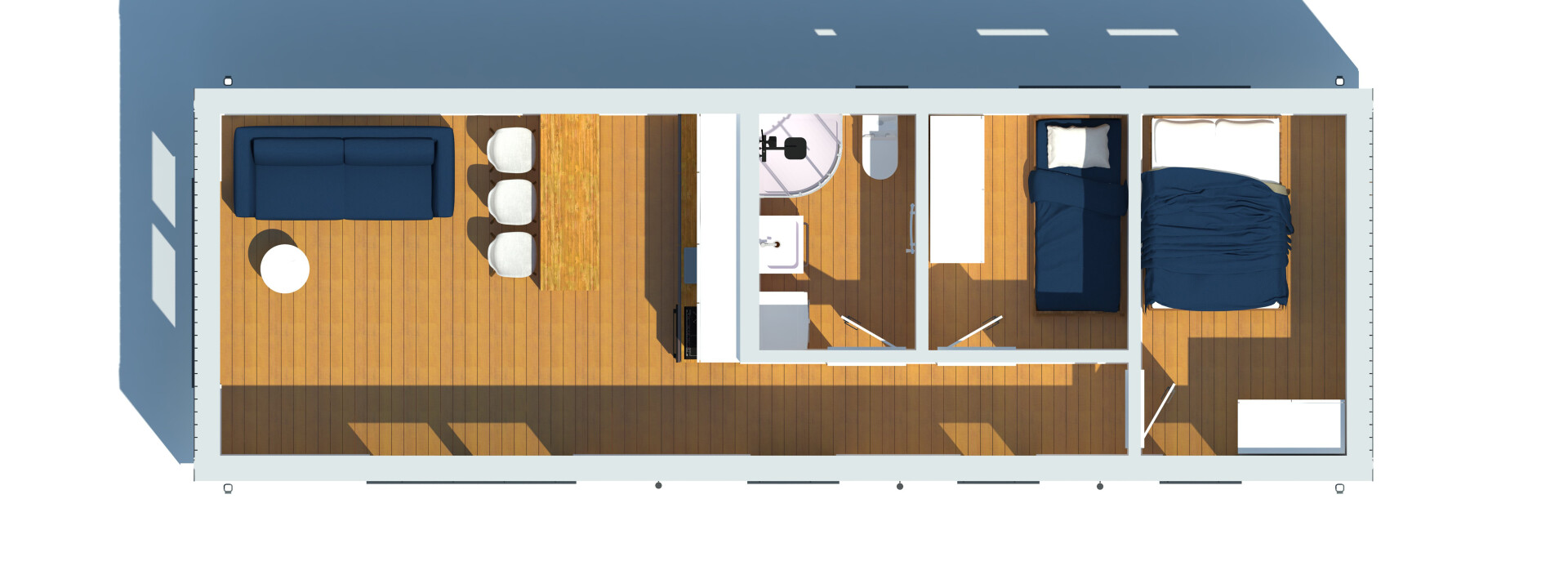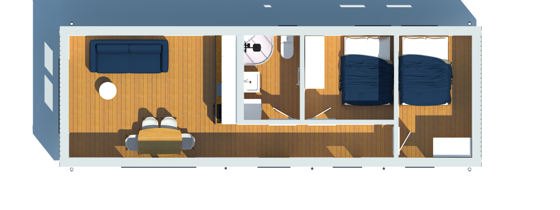De gevel in de Premium-modellen is gemaakt van duurzaam Resysta composietplanken en staande naad metalen panelen. Het interieur is afgewerkt met uitsluitend hoogwaardige materialen, zoals vinylpanelen, MDF-panelen en natuurlijk hout.