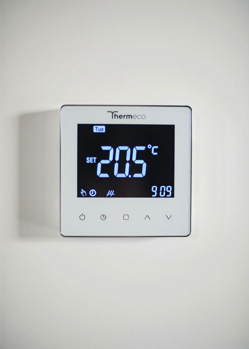 In het hele huis is elektrische vloerverwarming toegepast in de vorm van verwarmingsmatten. Elke kamer heeft een onafhankelijke temperatuurregeling via een moderne touchscreen-bediening.