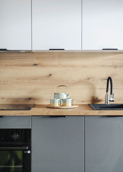 Elk huis wordt standaard uitgerust met een complete keukeninbouw inclusief alle apparatuur zoals een koelkast, vaatwasser, kookplaat, oven en afzuigkap.